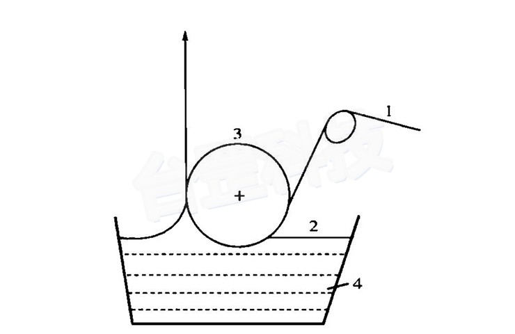 作為(wéi)最經典的塗布方法,其核(hé)心(xīn)是“浸潤-牽(qiān)引”的自平衡:基材(cái)繞塗布輥浸入塗料槽,液膜附著量由塗料黏度(50-200mPa·s)、牽引速度(50-200m/min)及輥隙共同決定,無需額外計(jì)量裝(zhuāng)置。早期用於照相(xiàng)紙量產,如今適配包裝薄膜防潮塗層等低精度場景,但塗層(céng)均(jun1)勻性差,難(nán)以滿足高端需求。